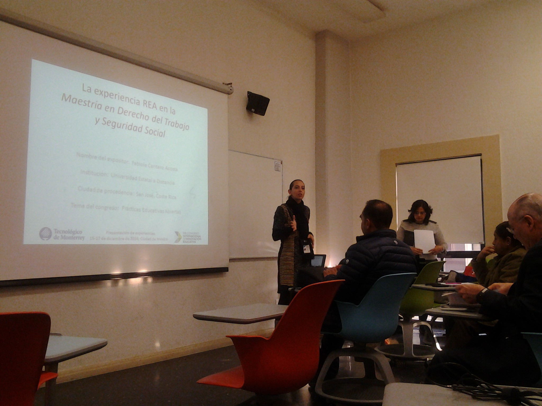 La señora Cantero fue invitada por colegas del Instituto Tecnológico de Monterrey que visitaron la UNED durante 2014, quienes consideraron que las experiencias desarrolladas en esta maestría, en el uso y aprovechamiento de los Recursos Educativos Abiertos (REA), son un excelente ejemplo de que este tipo de recursos pueden aprovecharse y brindar beneficios en diversas áreas, en este caso al Derecho.